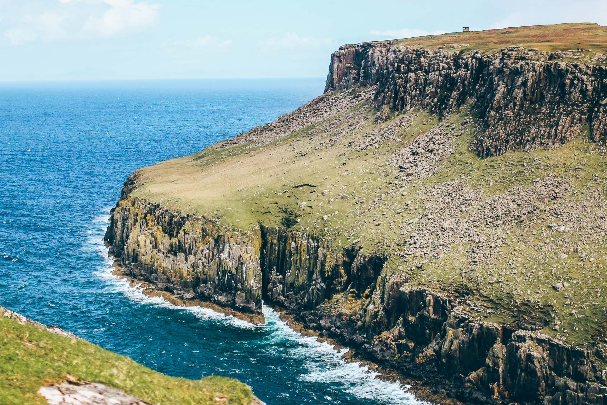 - Neist Point : Tout à l’Ouest de l’île, à l’opposé de notre Airbnb, on commence de bon matin par la petite rando qui mène à ce fameux phare perché sur la falaise. C’est mon coup de cœur de l’île de Skye ! Il faut compter 1h aller-retour depuis le parking. La balade est magnifique.