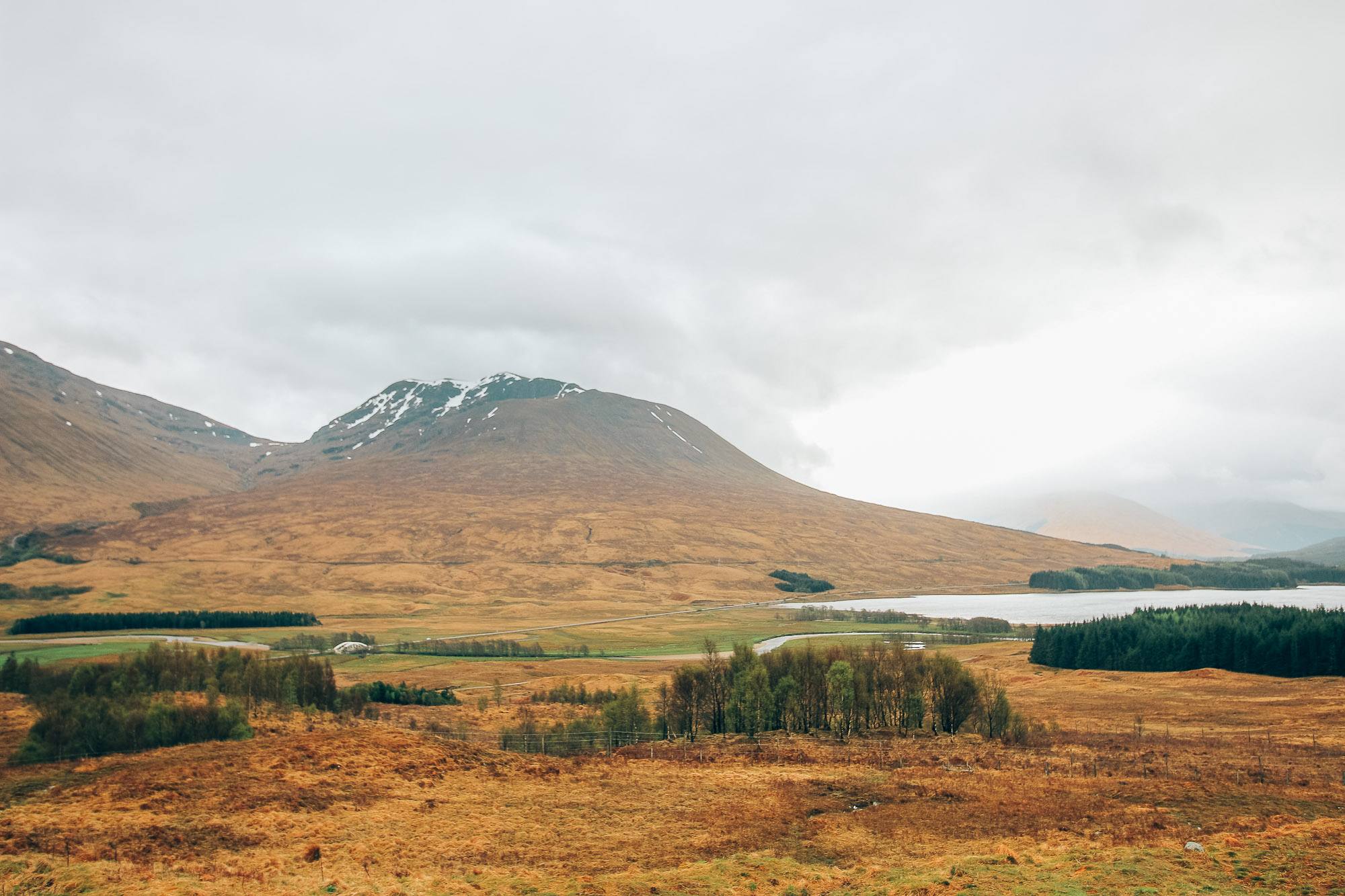 - La vallée de Glen Coe : des paysages grandioses, très ressemblants à l’Islande, la route traverse des collines brunies et sans grande végétation. Il y a même encore de la neige sur certains sommets. On sent que l’hiver doit être assez rude dans cette partie de l’Ecosse. Les paysages sont lunaires. J’ai beaucoup aimé ce coin là.
