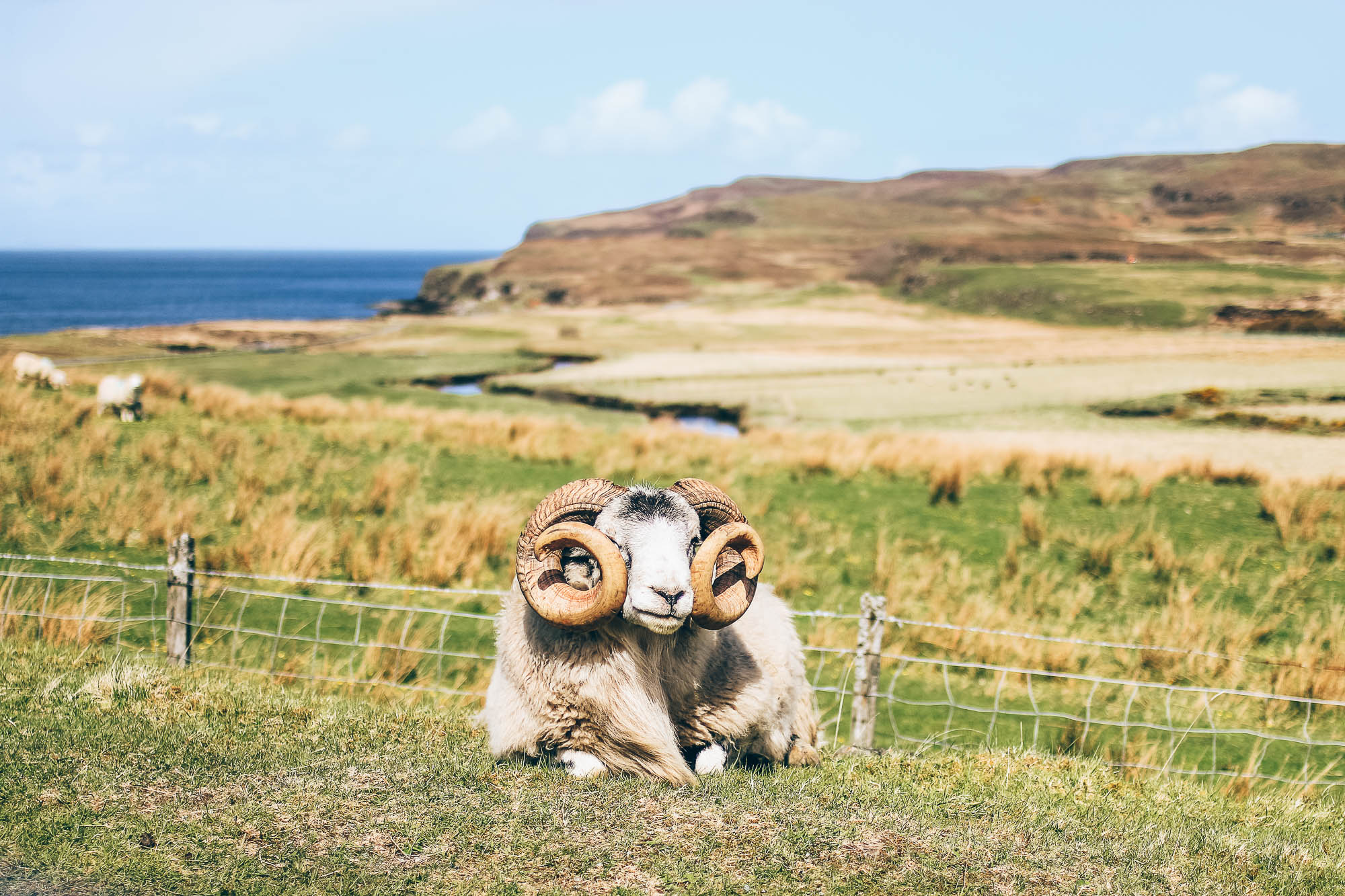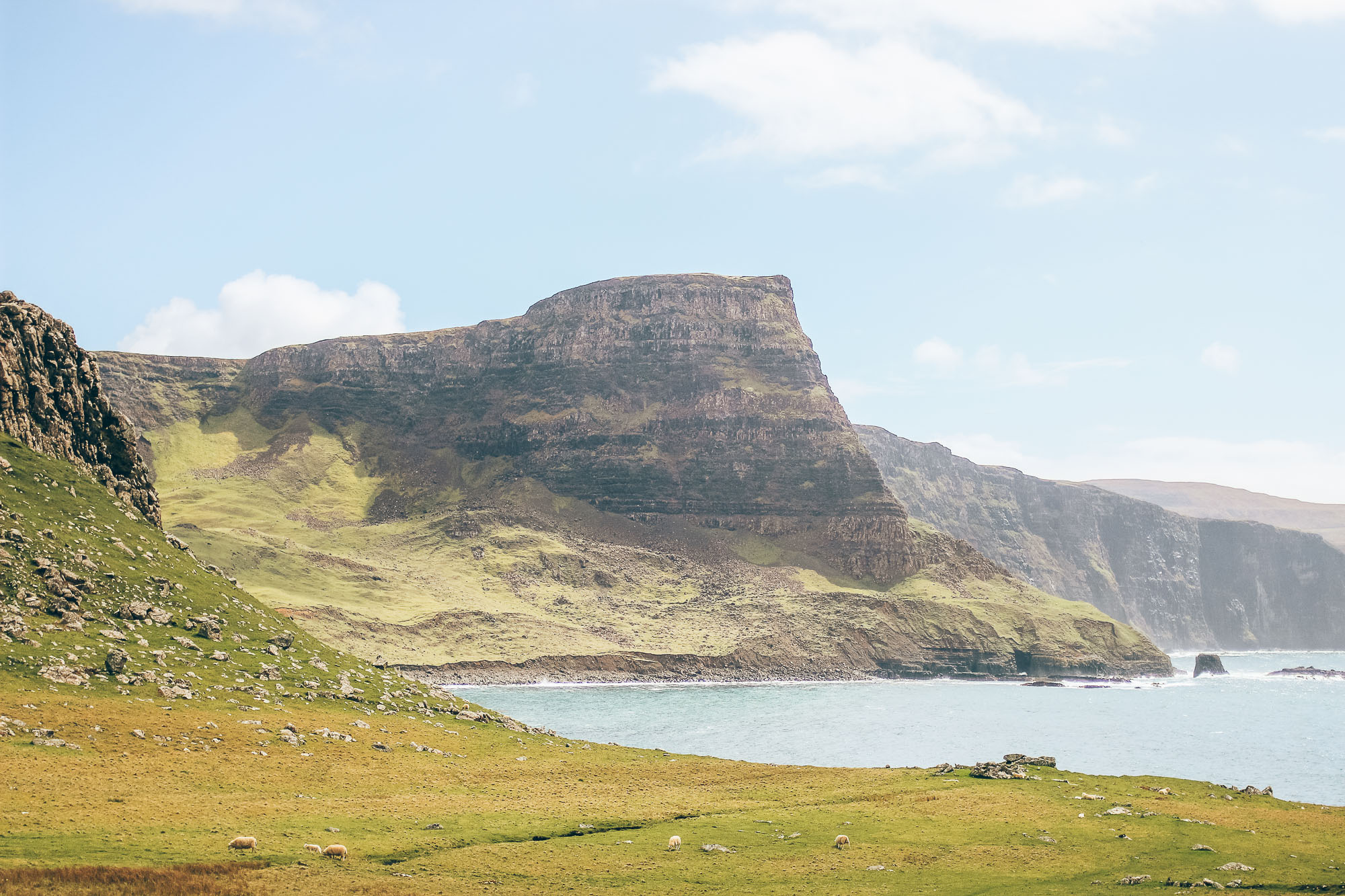 - Neist Point : Tout à l’Ouest de l’île, à l’opposé de notre Airbnb, on commence de bon matin par la petite rando qui mène à ce fameux phare perché sur la falaise. C’est mon coup de cœur de l’île de Skye ! Il faut compter 1h aller-retour depuis le parking. La balade est magnifique.