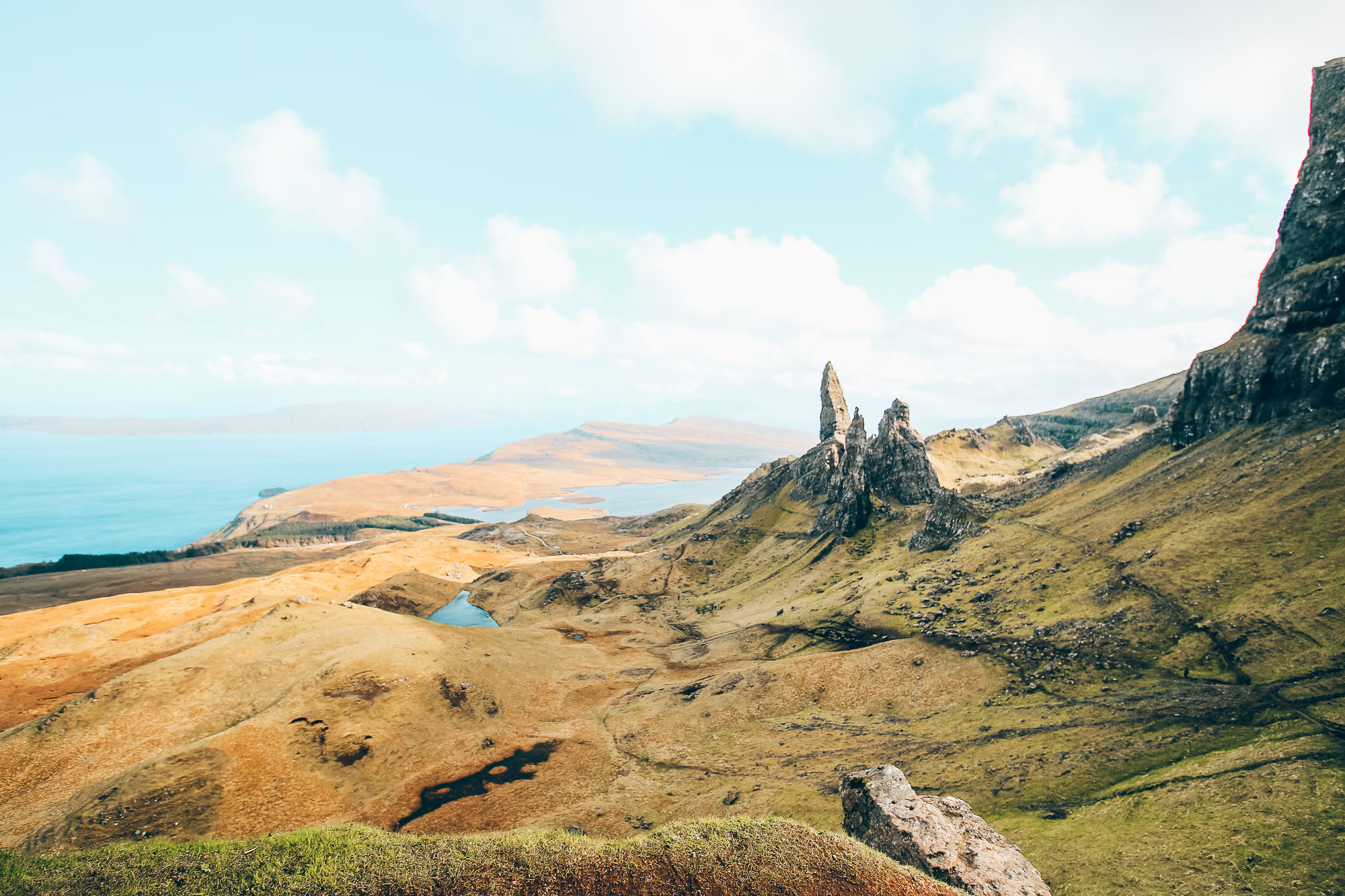 - Old man of Storr : on fini notre journée par cette fameuse randonnée. Il faut compter 2h aller-retour, à l’aller ça ne fait que monter, malheureusement pour moi je n’ai pas pu aller jusqu’au sommet, j’étais au bout de ma vie… (haha rien que ça). J’ai donc laissé l’appareil photo à mon mec et mon frère, j’étais tellement dégoûtée de ne pas y arriver, mais on avait déjà bien marché tout au long de la journée et mon anxiété a pris le dessus quand ça devenait un peu trop compliqué pour moi.
