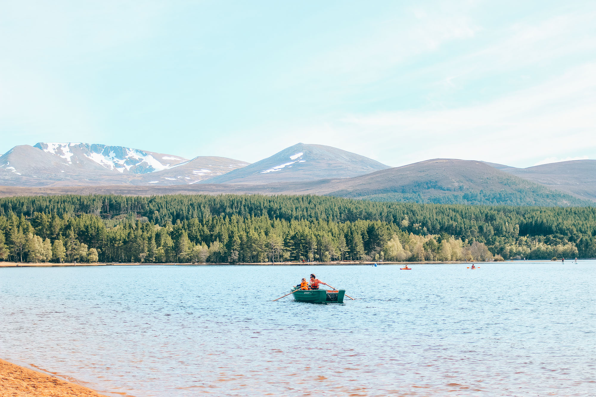 - Loch Morlich : On retourne déjeuner rapidement à Aviemore, puis on part l’après-midi faire un deuxième lac. Ici on loue des canoë, ce lac est beaucoup plus grand, plus familial, il y a beaucoup de familles qui se baignent. J’ai préféré le premier.
